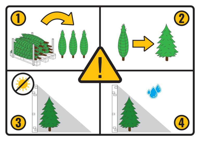 Bewahren Sie den Baum nach dem Kauf im Netz an einer sonnen- und windgeschützten Stelle im Freien oder in einer kühlen Garage auf.